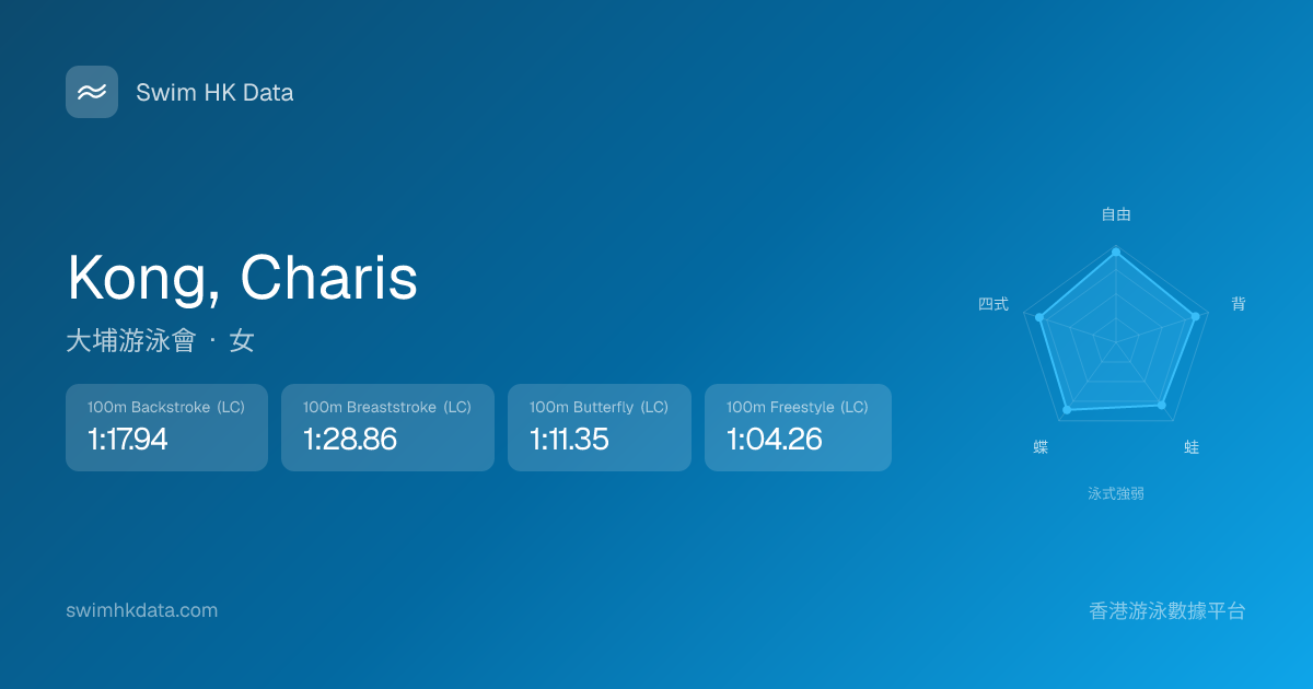 此圖表根據你所有比賽成績計算,顯示你在各泳式的相對強弱,僅供參考。繼續努力,每一次練習都會讓你更快更強!💪