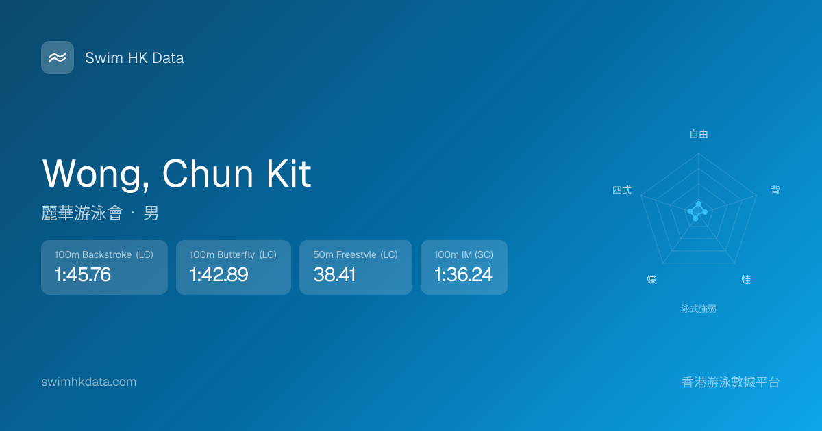 此圖表根據你所有比賽成績計算,顯示你在各泳式的相對強弱,僅供參考。繼續努力,每一次練習都會讓你更快更強!💪