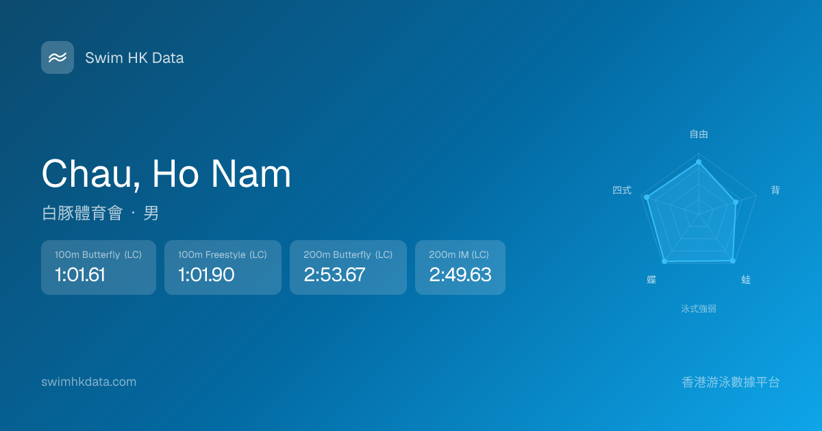 此圖表根據你所有比賽成績計算,顯示你在各泳式的相對強弱,僅供參考。繼續努力,每一次練習都會讓你更快更強!💪