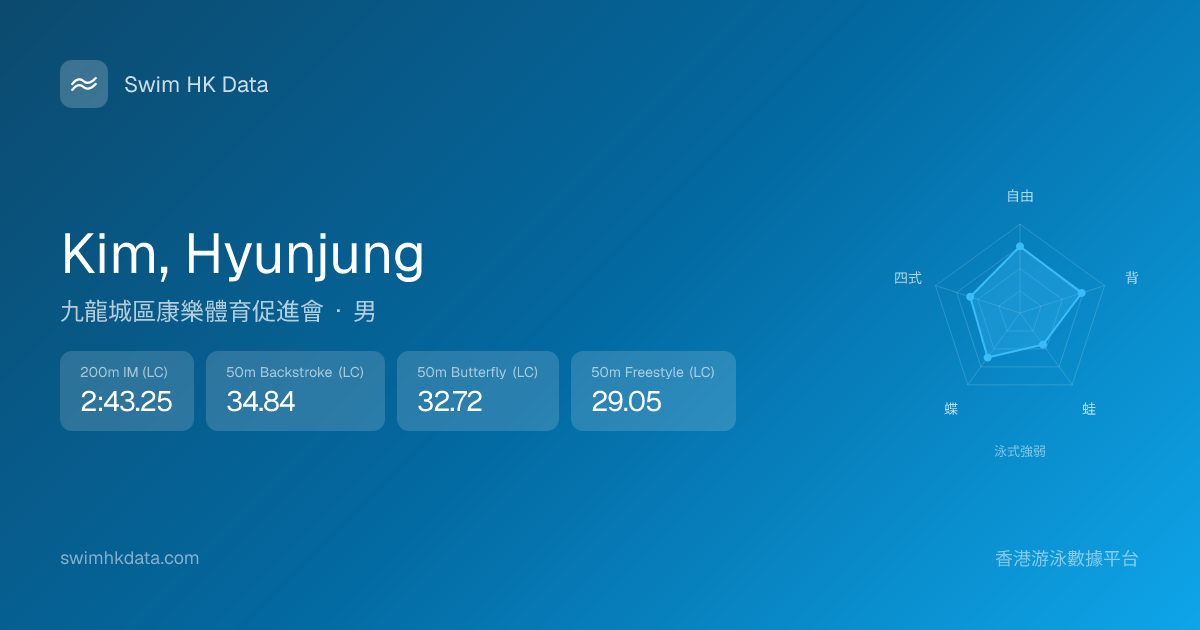 此圖表根據你所有比賽成績計算,顯示你在各泳式的相對強弱,僅供參考。繼續努力,每一次練習都會讓你更快更強!💪