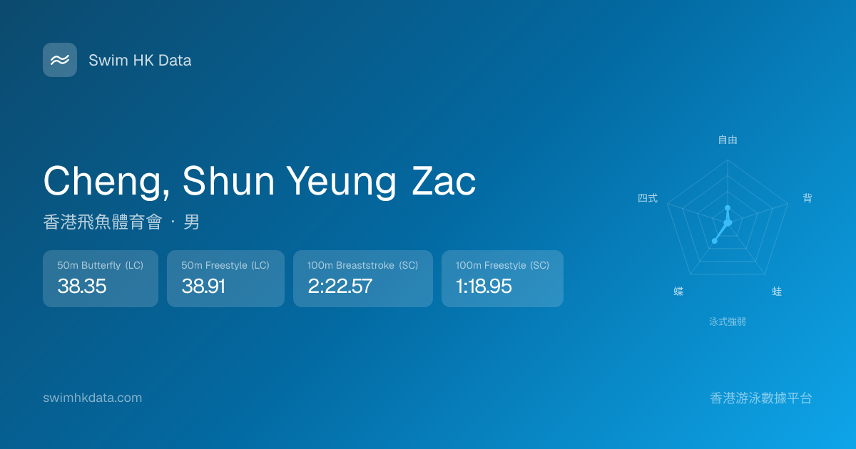 此圖表根據你所有比賽成績計算,顯示你在各泳式的相對強弱,僅供參考。繼續努力,每一次練習都會讓你更快更強!💪