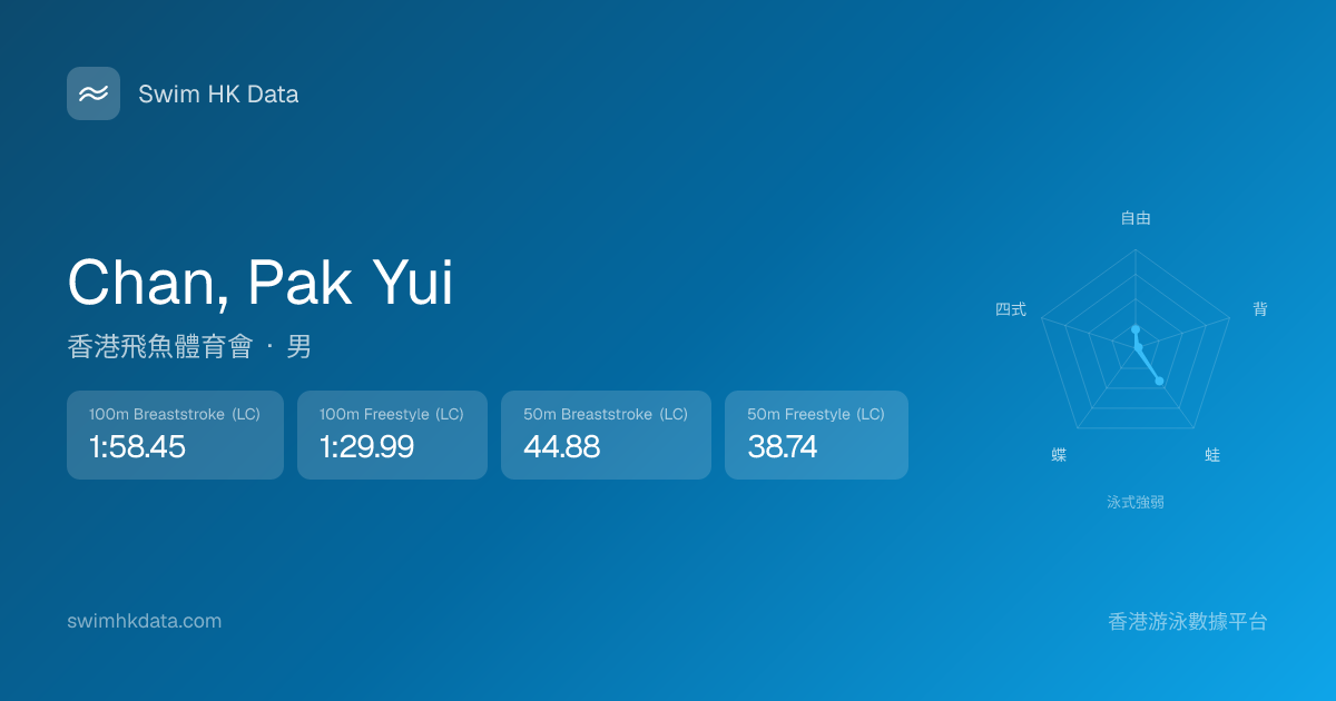 此圖表根據你所有比賽成績計算,顯示你在各泳式的相對強弱,僅供參考。繼續努力,每一次練習都會讓你更快更強!💪