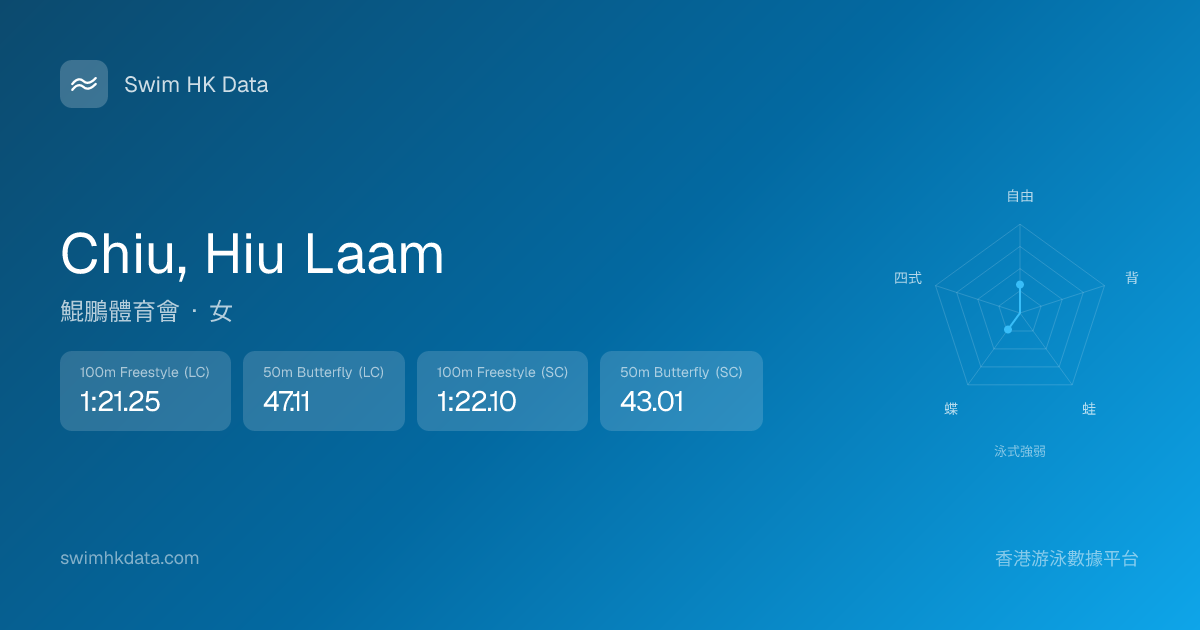此圖表根據你所有比賽成績計算,顯示你在各泳式的相對強弱,僅供參考。繼續努力,每一次練習都會讓你更快更強!💪