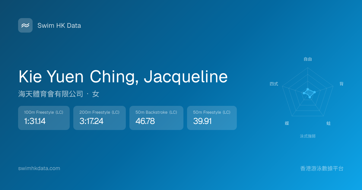 此圖表根據你所有比賽成績計算,顯示你在各泳式的相對強弱,僅供參考。繼續努力,每一次練習都會讓你更快更強!💪