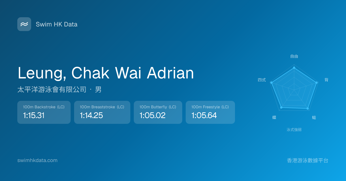 此圖表根據你所有比賽成績計算,顯示你在各泳式的相對強弱,僅供參考。繼續努力,每一次練習都會讓你更快更強!💪