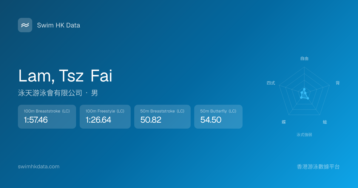 此圖表根據你所有比賽成績計算,顯示你在各泳式的相對強弱,僅供參考。繼續努力,每一次練習都會讓你更快更強!💪