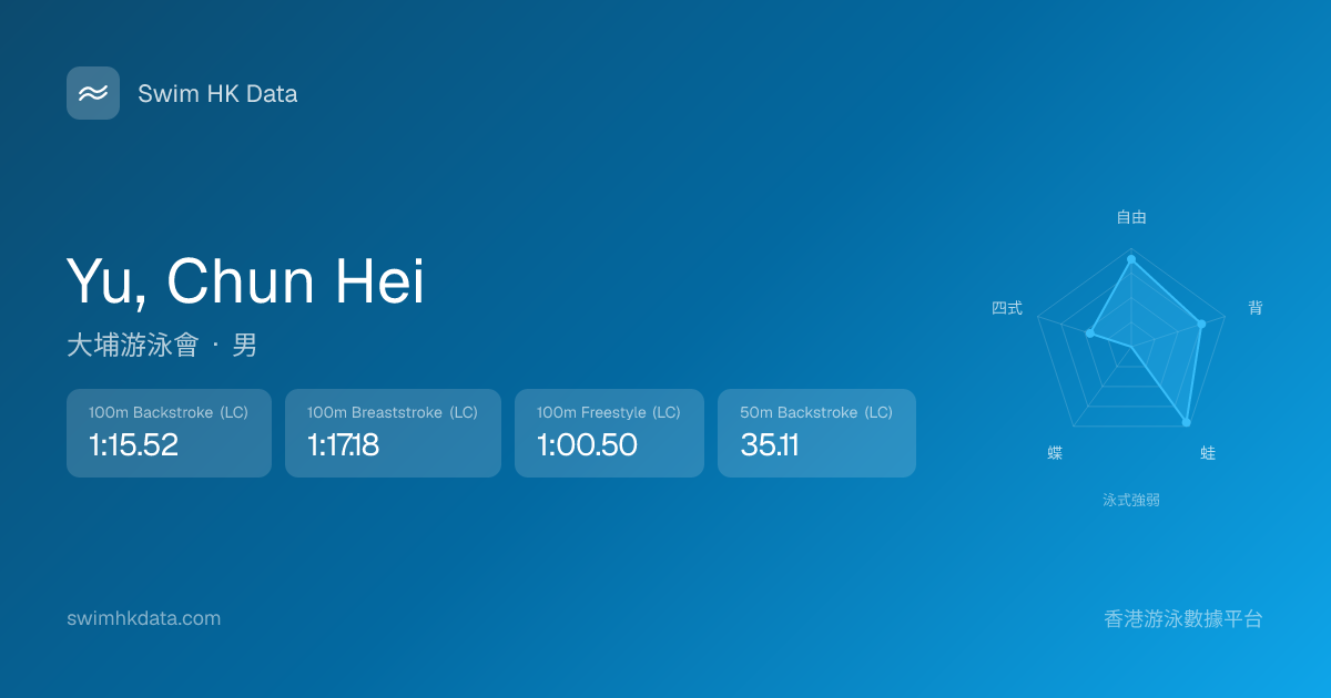 此圖表根據你所有比賽成績計算,顯示你在各泳式的相對強弱,僅供參考。繼續努力,每一次練習都會讓你更快更強!💪
