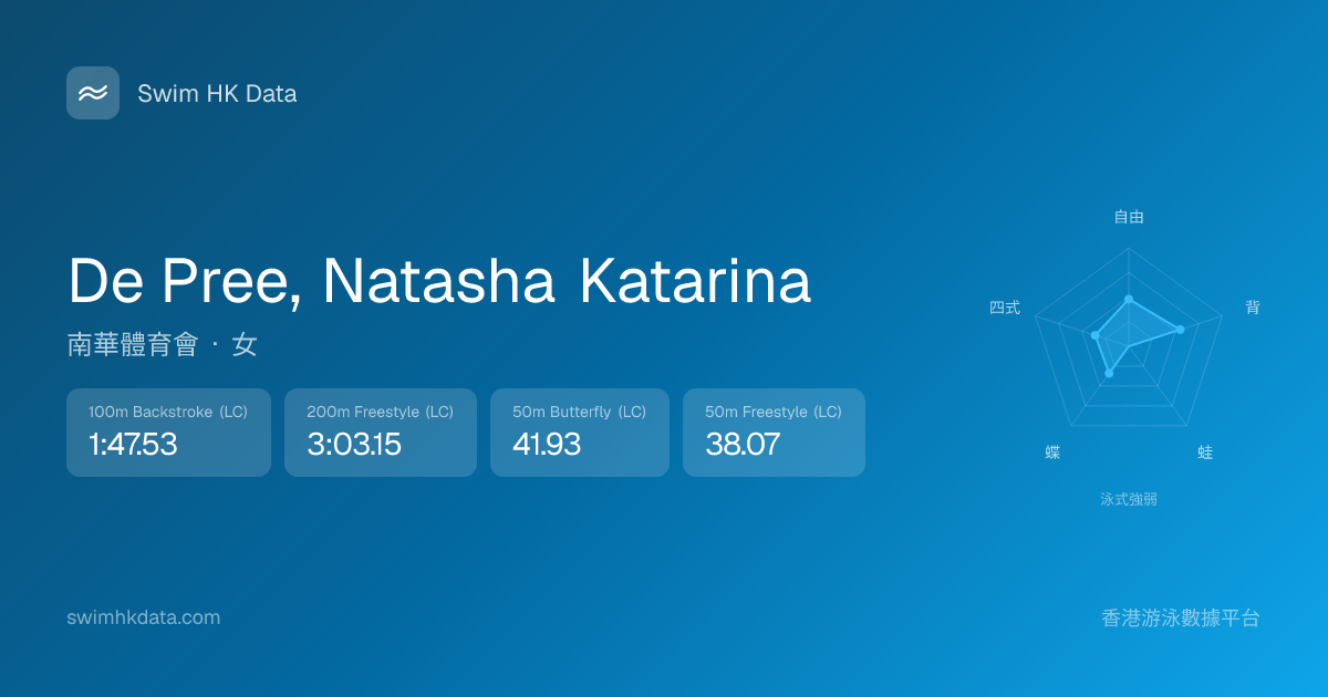 此圖表根據你所有比賽成績計算,顯示你在各泳式的相對強弱,僅供參考。繼續努力,每一次練習都會讓你更快更強!💪