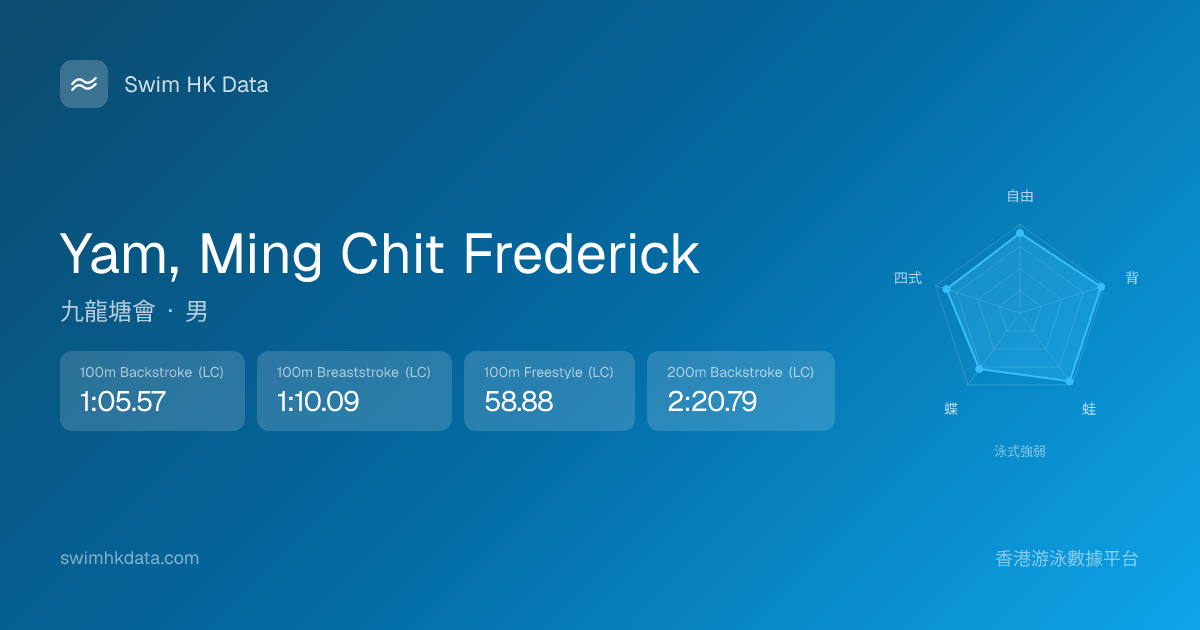 此圖表根據你所有比賽成績計算,顯示你在各泳式的相對強弱,僅供參考。繼續努力,每一次練習都會讓你更快更強!💪