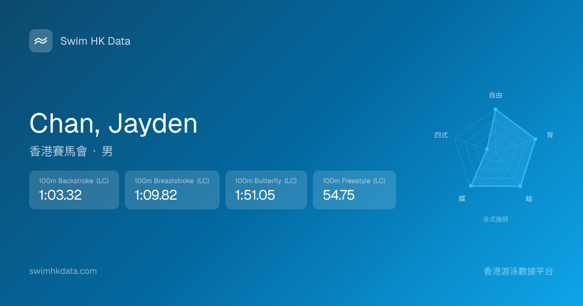 此圖表根據你所有比賽成績計算,顯示你在各泳式的相對強弱,僅供參考。繼續努力,每一次練習都會讓你更快更強!💪