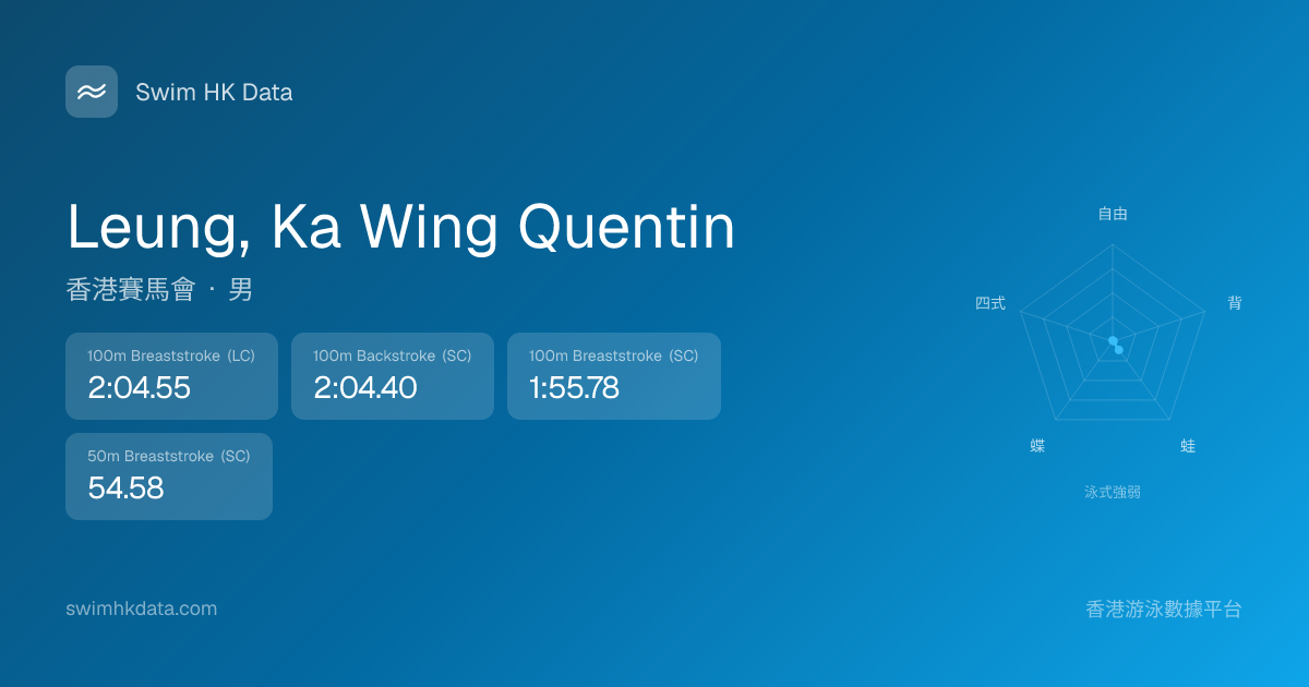 此圖表根據你所有比賽成績計算,顯示你在各泳式的相對強弱,僅供參考。繼續努力,每一次練習都會讓你更快更強!💪