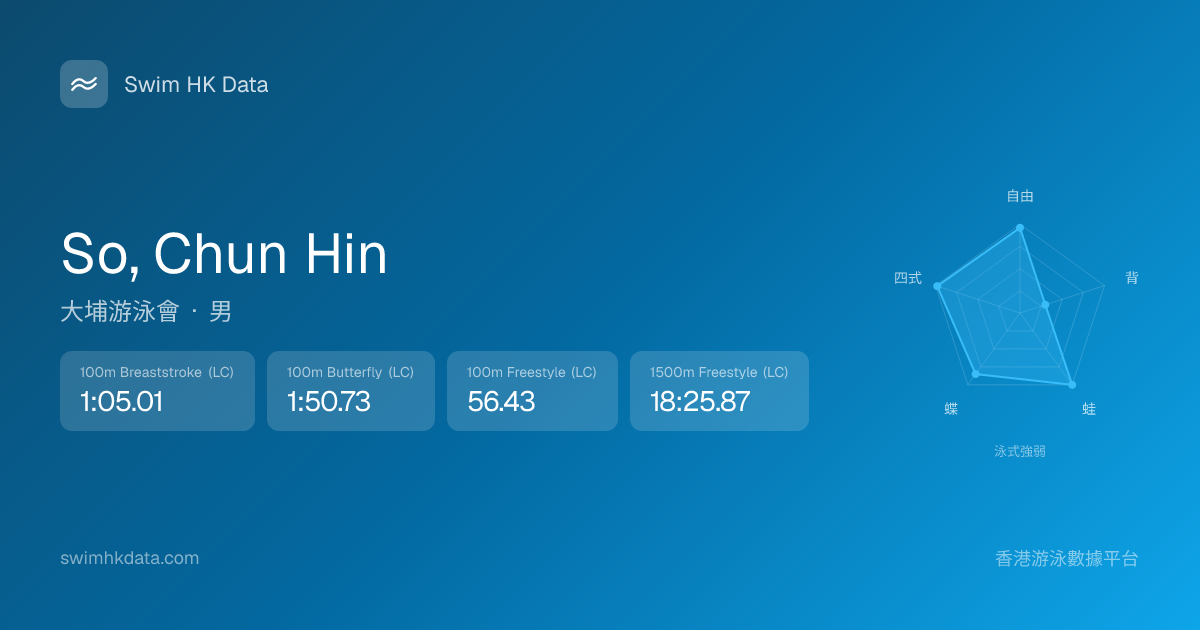 此圖表根據你所有比賽成績計算,顯示你在各泳式的相對強弱,僅供參考。繼續努力,每一次練習都會讓你更快更強!💪