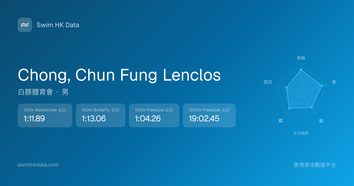 此圖表根據你所有比賽成績計算,顯示你在各泳式的相對強弱,僅供參考。繼續努力,每一次練習都會讓你更快更強!💪