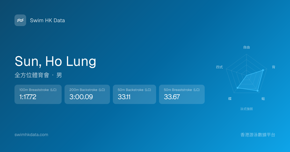 此圖表根據你所有比賽成績計算,顯示你在各泳式的相對強弱,僅供參考。繼續努力,每一次練習都會讓你更快更強!💪