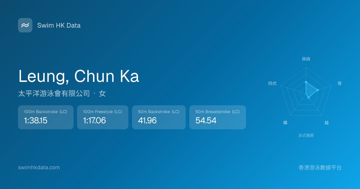 此圖表根據你所有比賽成績計算,顯示你在各泳式的相對強弱,僅供參考。繼續努力,每一次練習都會讓你更快更強!💪