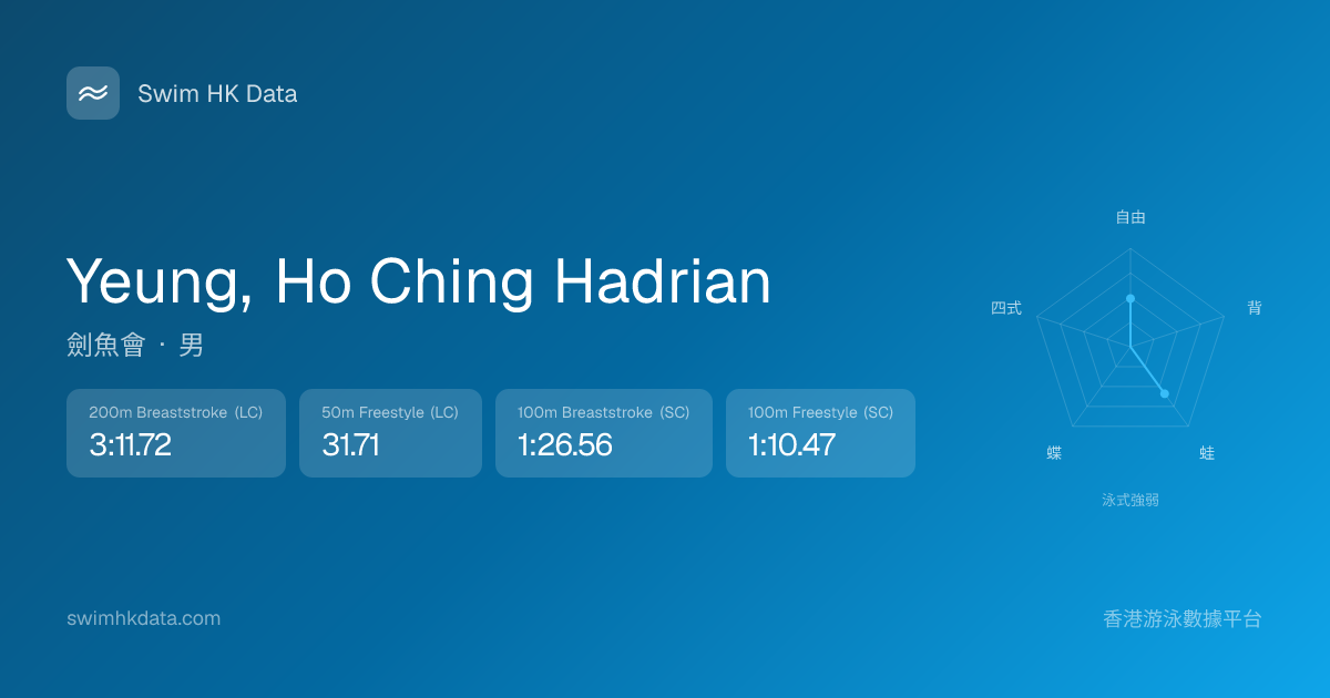 此圖表根據你所有比賽成績計算,顯示你在各泳式的相對強弱,僅供參考。繼續努力,每一次練習都會讓你更快更強!💪