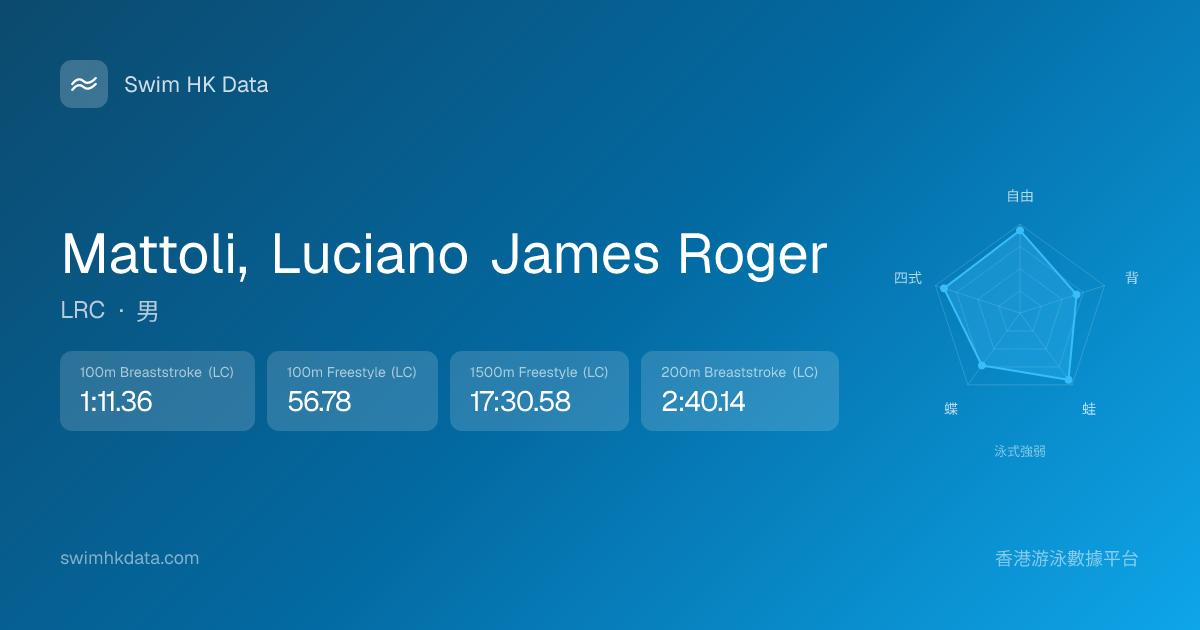 此圖表根據你所有比賽成績計算,顯示你在各泳式的相對強弱,僅供參考。繼續努力,每一次練習都會讓你更快更強!💪