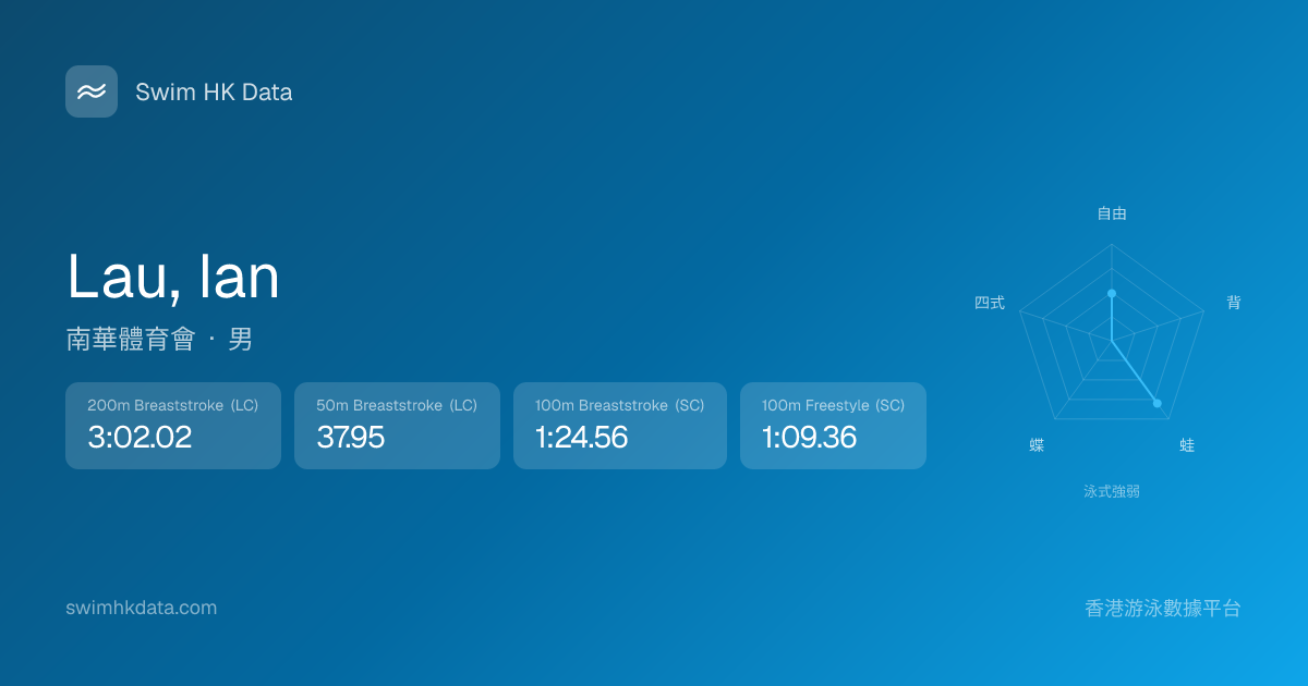 此圖表根據你所有比賽成績計算,顯示你在各泳式的相對強弱,僅供參考。繼續努力,每一次練習都會讓你更快更強!💪