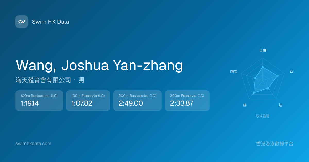 此圖表根據你所有比賽成績計算,顯示你在各泳式的相對強弱,僅供參考。繼續努力,每一次練習都會讓你更快更強!💪