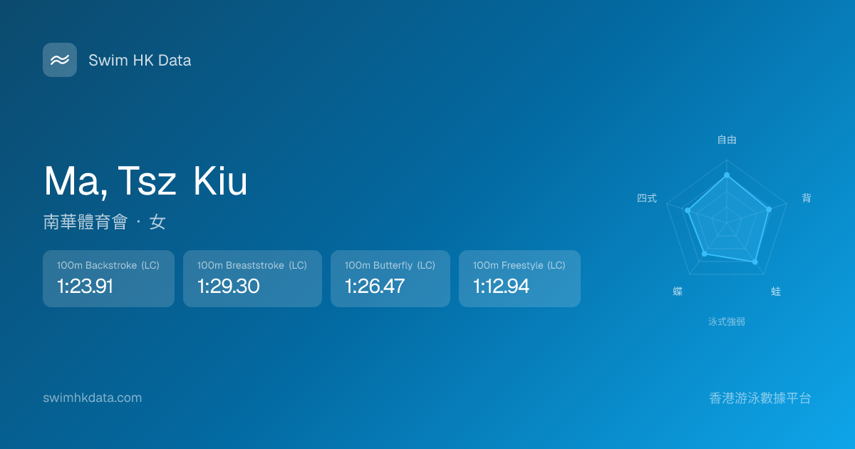 此圖表根據你所有比賽成績計算,顯示你在各泳式的相對強弱,僅供參考。繼續努力,每一次練習都會讓你更快更強!💪