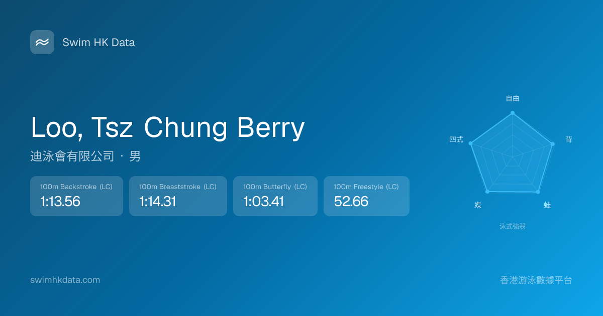 此圖表根據你所有比賽成績計算,顯示你在各泳式的相對強弱,僅供參考。繼續努力,每一次練習都會讓你更快更強!💪