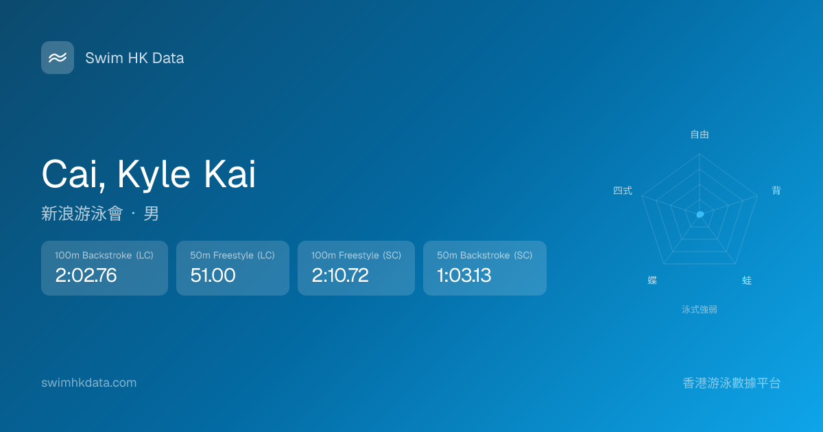 此圖表根據你所有比賽成績計算,顯示你在各泳式的相對強弱,僅供參考。繼續努力,每一次練習都會讓你更快更強!💪