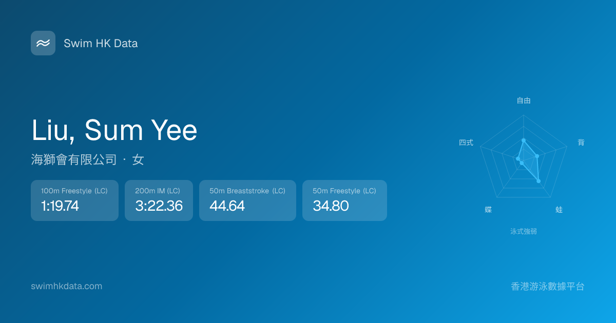 此圖表根據你所有比賽成績計算,顯示你在各泳式的相對強弱,僅供參考。繼續努力,每一次練習都會讓你更快更強!💪