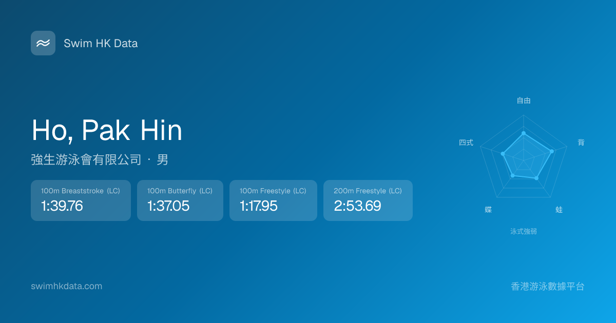 此圖表根據你所有比賽成績計算,顯示你在各泳式的相對強弱,僅供參考。繼續努力,每一次練習都會讓你更快更強!💪