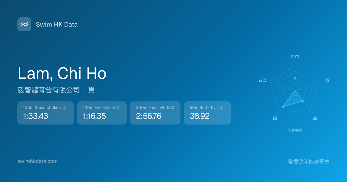 此圖表根據你所有比賽成績計算,顯示你在各泳式的相對強弱,僅供參考。繼續努力,每一次練習都會讓你更快更強!💪