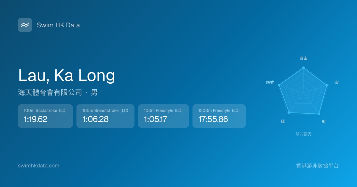 此圖表根據你所有比賽成績計算,顯示你在各泳式的相對強弱,僅供參考。繼續努力,每一次練習都會讓你更快更強!💪