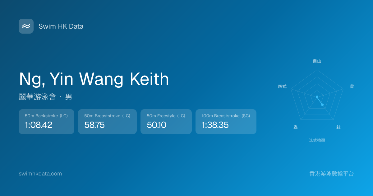此圖表根據你所有比賽成績計算,顯示你在各泳式的相對強弱,僅供參考。繼續努力,每一次練習都會讓你更快更強!💪