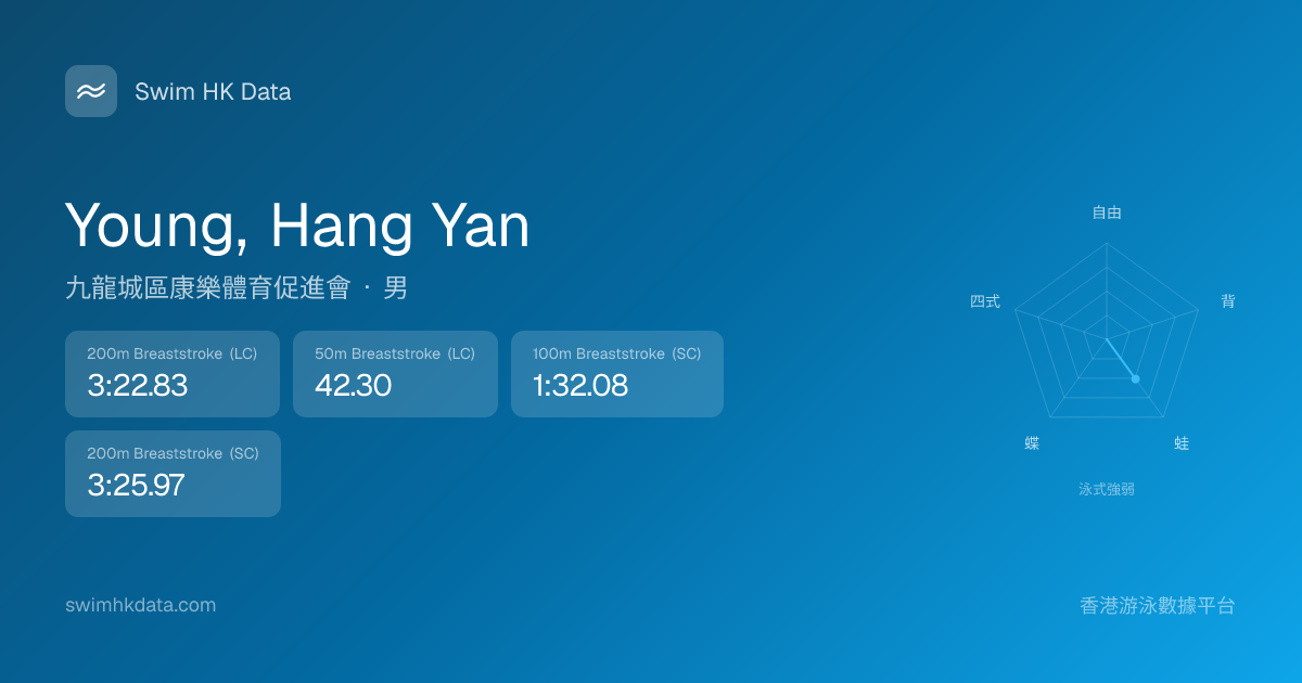 此圖表根據你所有比賽成績計算,顯示你在各泳式的相對強弱,僅供參考。繼續努力,每一次練習都會讓你更快更強!💪