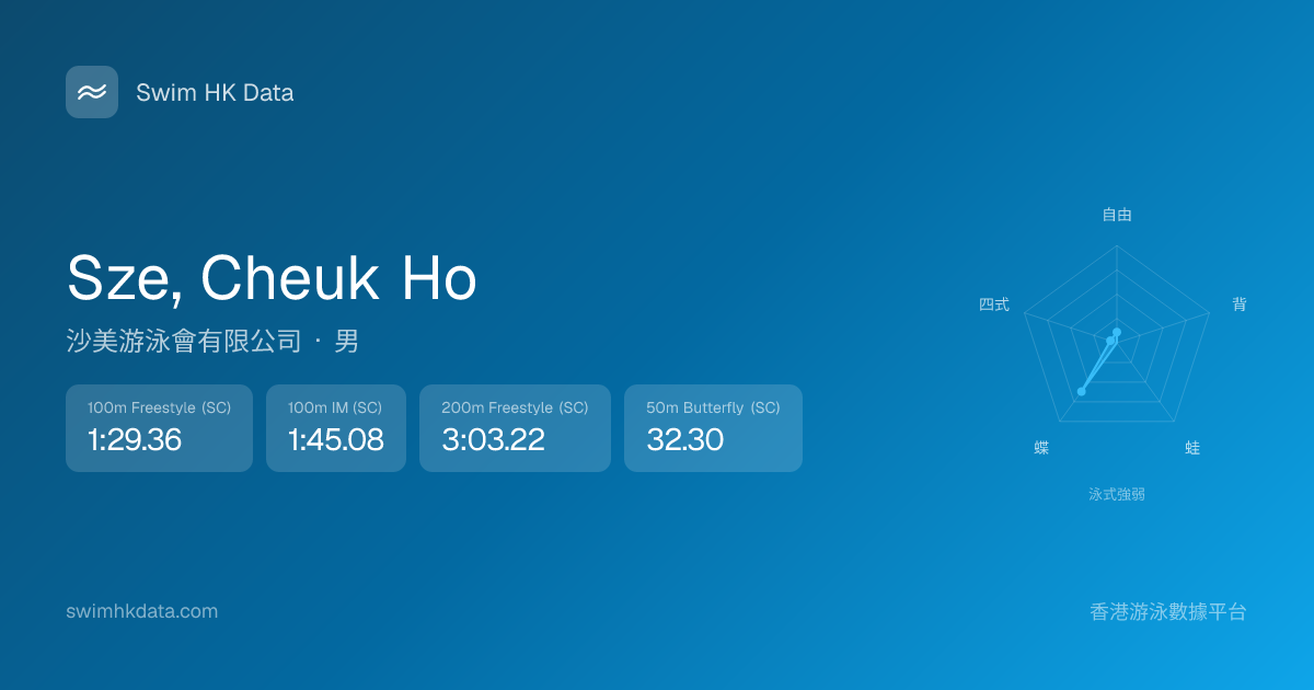 此圖表根據你所有比賽成績計算,顯示你在各泳式的相對強弱,僅供參考。繼續努力,每一次練習都會讓你更快更強!💪