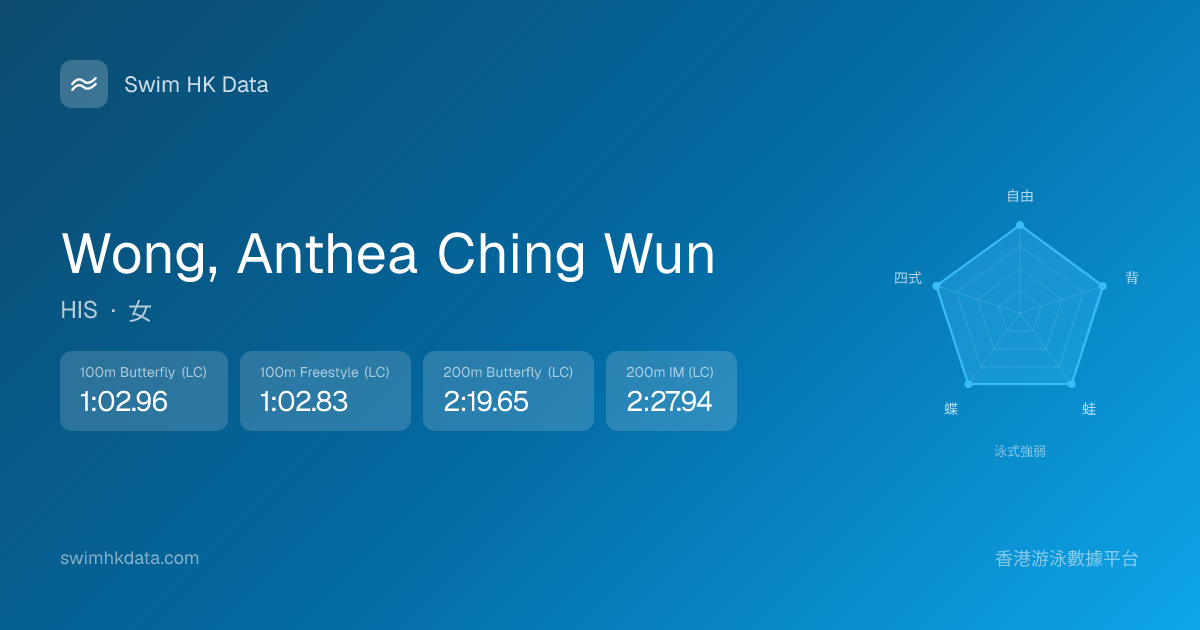 此圖表根據你所有比賽成績計算,顯示你在各泳式的相對強弱,僅供參考。繼續努力,每一次練習都會讓你更快更強!💪