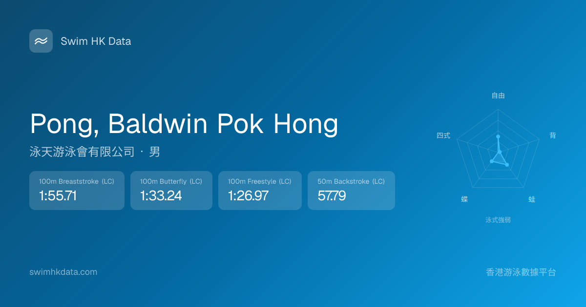 此圖表根據你所有比賽成績計算,顯示你在各泳式的相對強弱,僅供參考。繼續努力,每一次練習都會讓你更快更強!💪