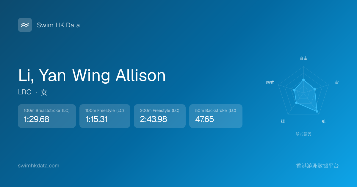 此圖表根據你所有比賽成績計算,顯示你在各泳式的相對強弱,僅供參考。繼續努力,每一次練習都會讓你更快更強!💪
