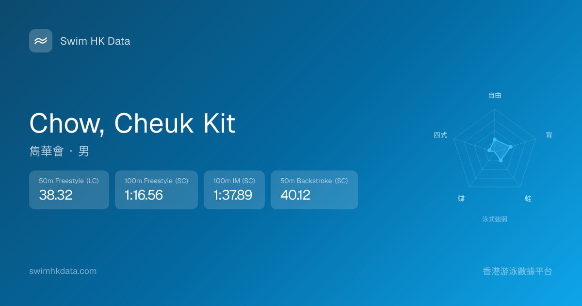 此圖表根據你所有比賽成績計算,顯示你在各泳式的相對強弱,僅供參考。繼續努力,每一次練習都會讓你更快更強!💪