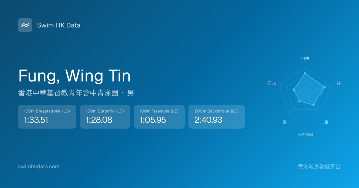 此圖表根據你所有比賽成績計算,顯示你在各泳式的相對強弱,僅供參考。繼續努力,每一次練習都會讓你更快更強!💪