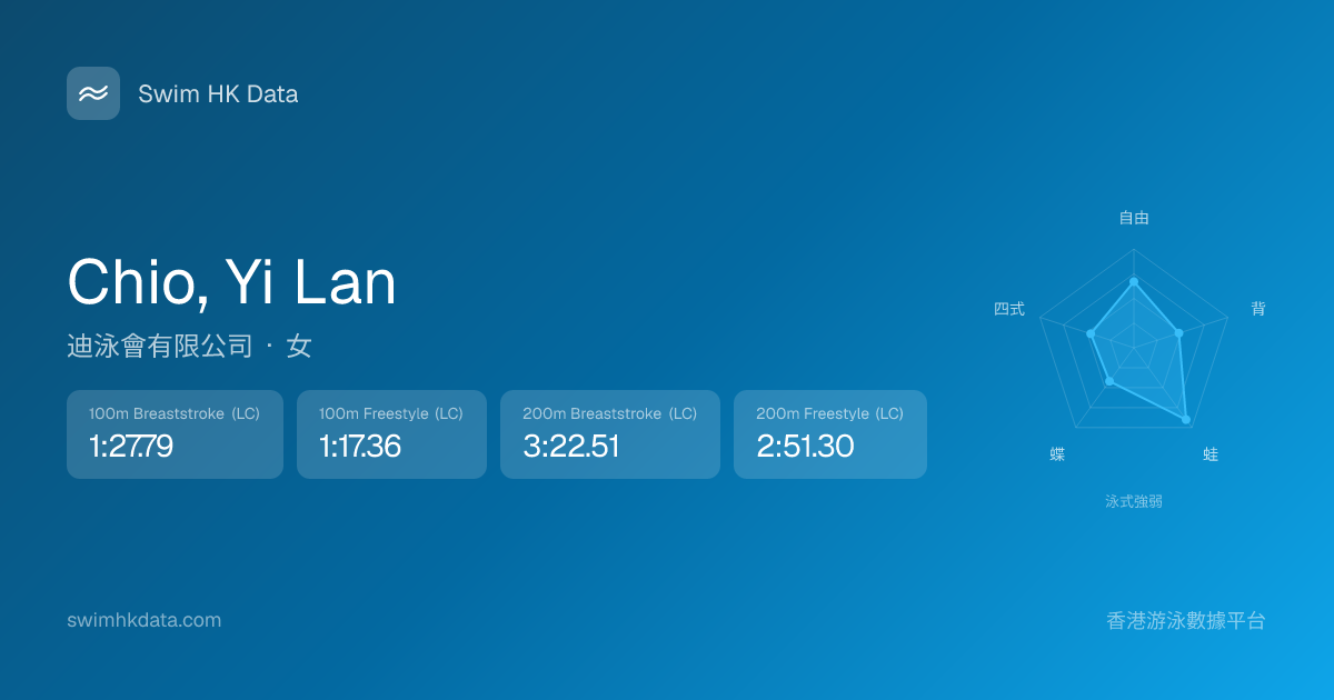 此圖表根據你所有比賽成績計算,顯示你在各泳式的相對強弱,僅供參考。繼續努力,每一次練習都會讓你更快更強!💪