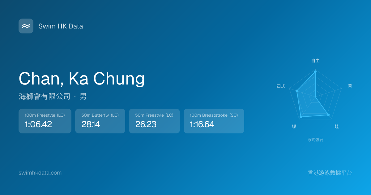 此圖表根據你所有比賽成績計算,顯示你在各泳式的相對強弱,僅供參考。繼續努力,每一次練習都會讓你更快更強!💪
