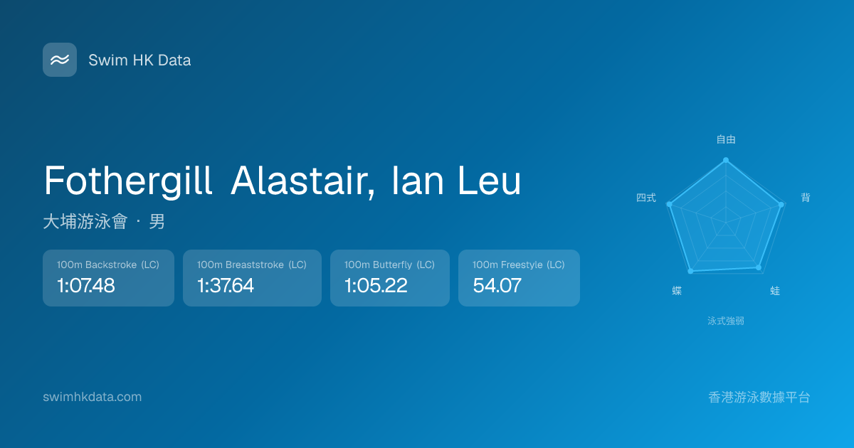 此圖表根據你所有比賽成績計算,顯示你在各泳式的相對強弱,僅供參考。繼續努力,每一次練習都會讓你更快更強!💪