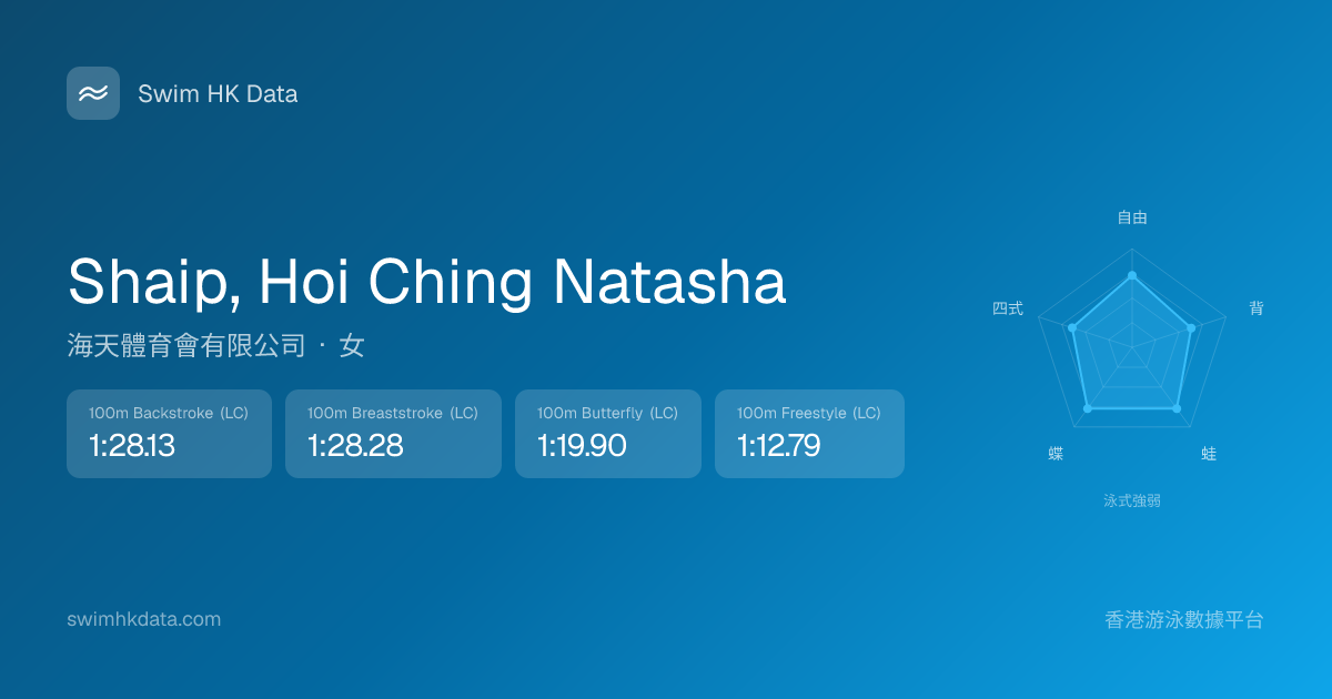 此圖表根據你所有比賽成績計算,顯示你在各泳式的相對強弱,僅供參考。繼續努力,每一次練習都會讓你更快更強!💪