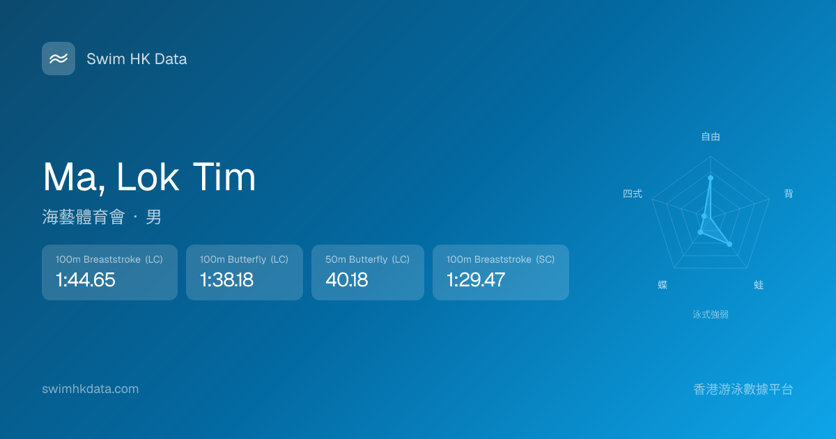 此圖表根據你所有比賽成績計算,顯示你在各泳式的相對強弱,僅供參考。繼續努力,每一次練習都會讓你更快更強!💪