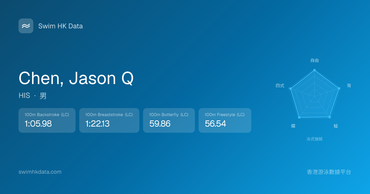 此圖表根據你所有比賽成績計算,顯示你在各泳式的相對強弱,僅供參考。繼續努力,每一次練習都會讓你更快更強!💪