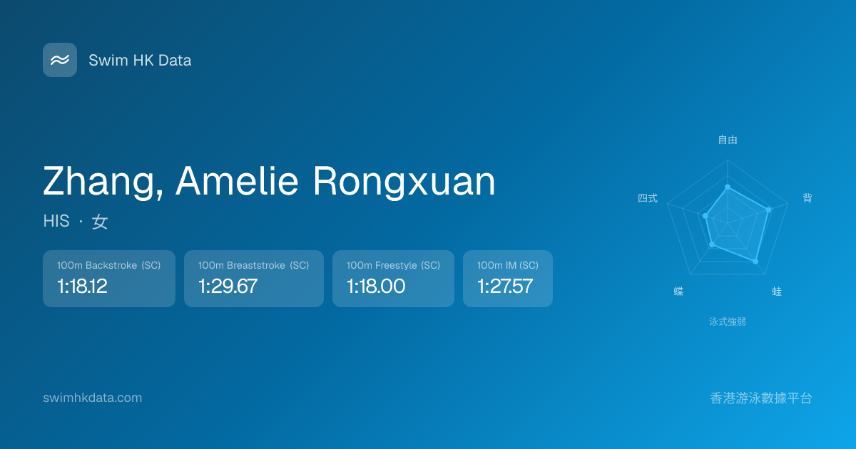此圖表根據你所有比賽成績計算,顯示你在各泳式的相對強弱,僅供參考。繼續努力,每一次練習都會讓你更快更強!💪