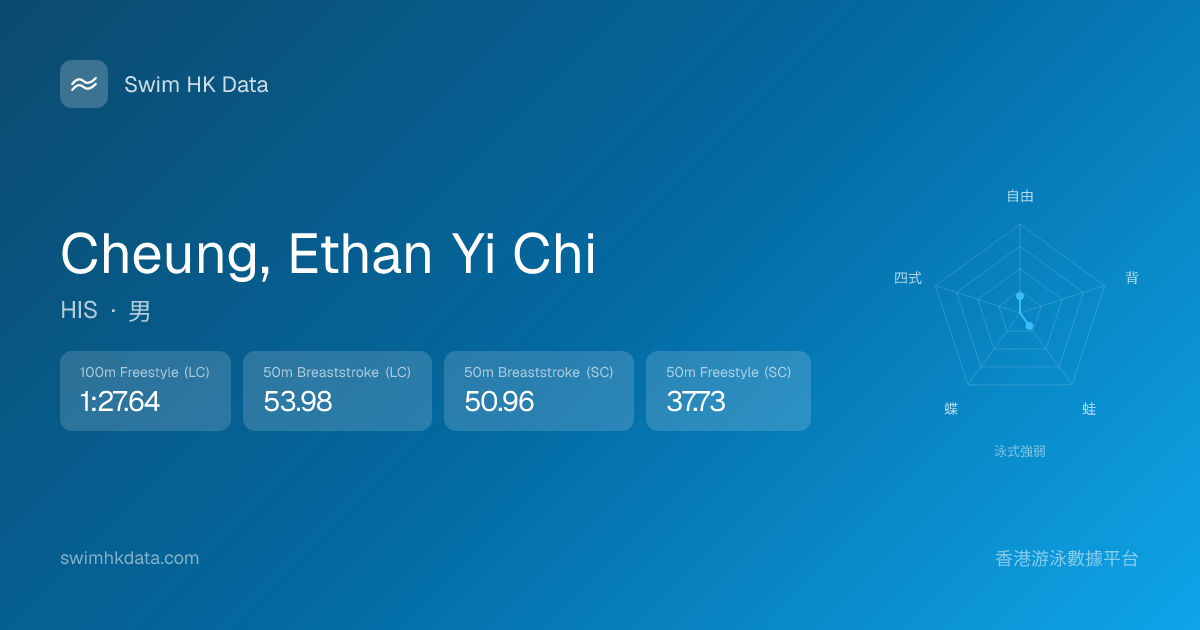 此圖表根據你所有比賽成績計算,顯示你在各泳式的相對強弱,僅供參考。繼續努力,每一次練習都會讓你更快更強!💪
