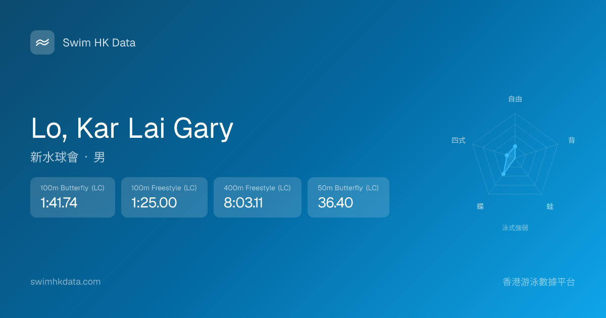 此圖表根據你所有比賽成績計算,顯示你在各泳式的相對強弱,僅供參考。繼續努力,每一次練習都會讓你更快更強!💪