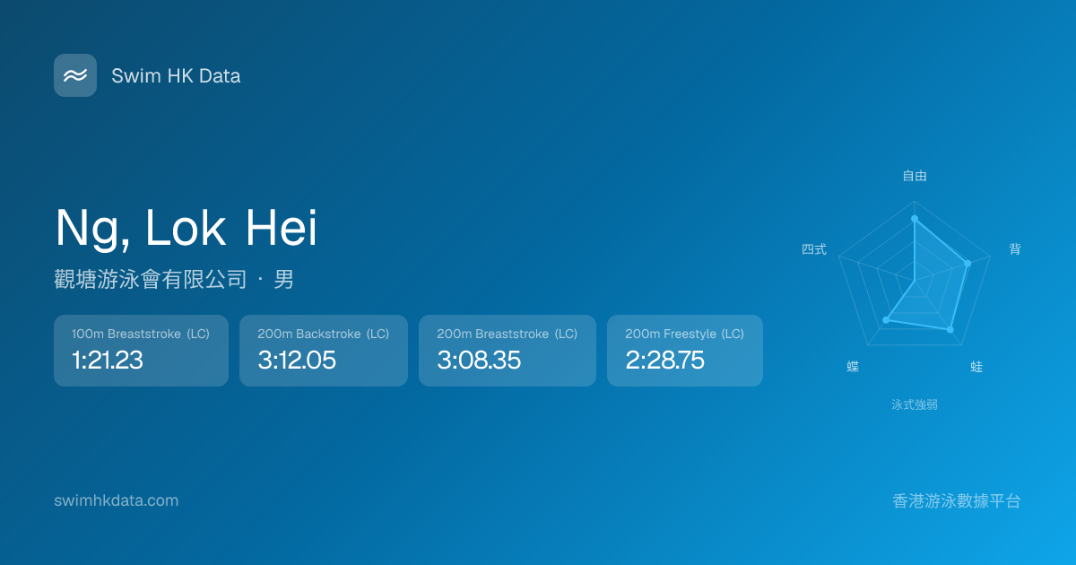 此圖表根據你所有比賽成績計算,顯示你在各泳式的相對強弱,僅供參考。繼續努力,每一次練習都會讓你更快更強!💪