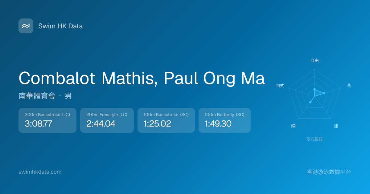 此圖表根據你所有比賽成績計算,顯示你在各泳式的相對強弱,僅供參考。繼續努力,每一次練習都會讓你更快更強!💪