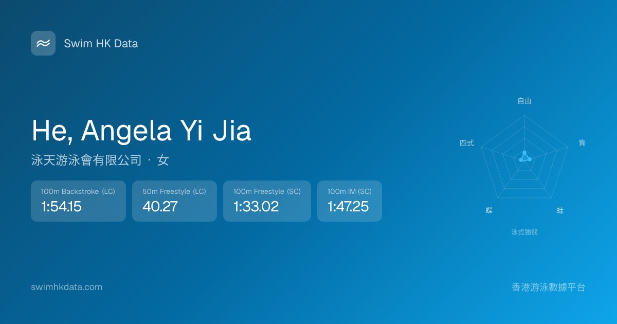 此圖表根據你所有比賽成績計算,顯示你在各泳式的相對強弱,僅供參考。繼續努力,每一次練習都會讓你更快更強!💪